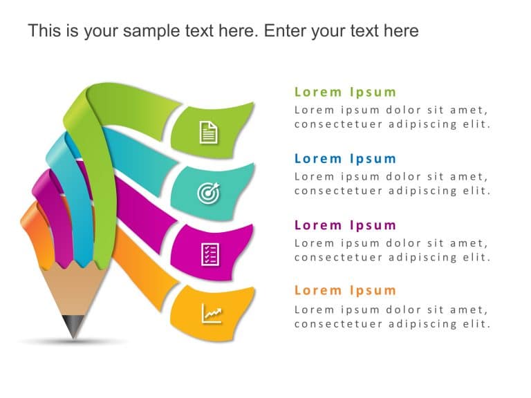 The layout looks sleek and modern, with arrow designs that help emphasize points in each section effectively.The use of icons, for each step improves comprehension. Keeps your audience interested.The color palette is contemporary and polished making it perfect for business meetings,school environments and group idea sharing sessions.